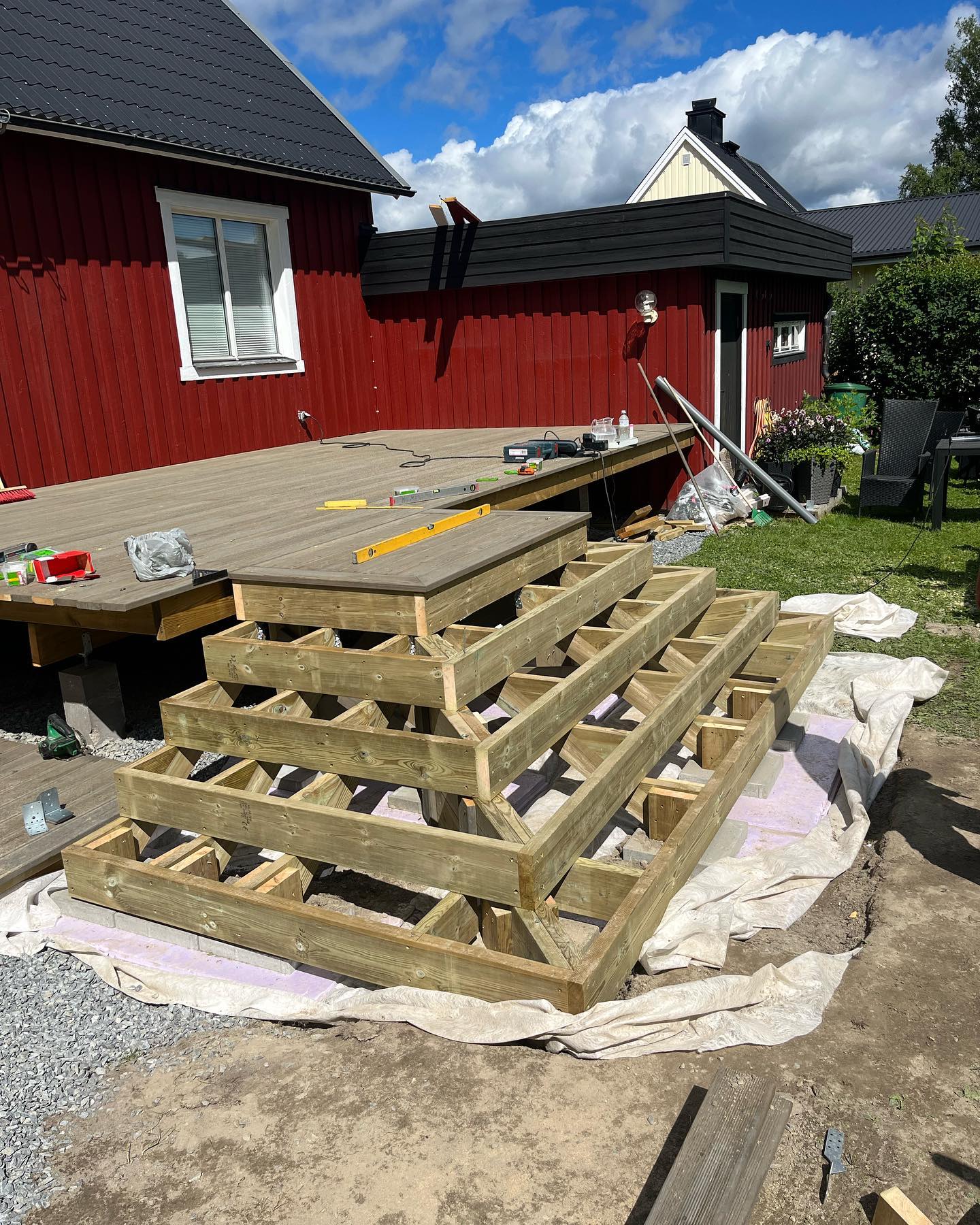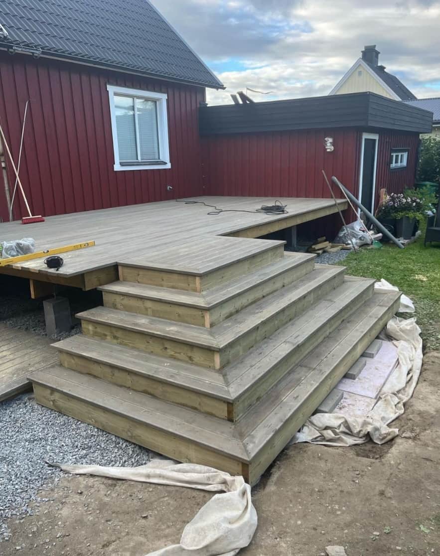 Vårt team av skickliga snickare tar sig an allt från att bygga robusta och inbjudande altaner till att konstruera funktionella carportar, alltid med ett öga för detaljer och hållbarhet. Vi förstår också vikten av starka grunder i varje byggprojekt och är experter på att gjuta plattor som lägger basen för säkra och stadiga konstruktioner. Dessutom har våra trätrappor blivit ett signaturarbete för oss, där varje trappa inte bara är praktisk och säker utan också en estetisk tillgång för hemmet.